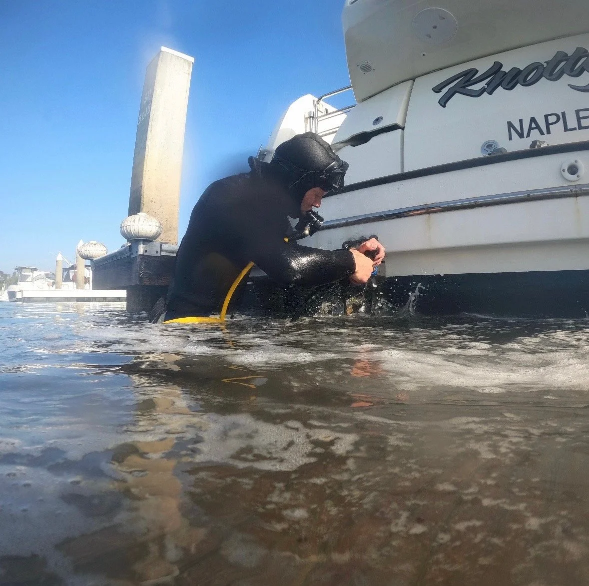 Hull cleaning is crucial because it helps maintain the efficiency and safety of a boat. Over time, marine growth like barnacles, mussels, and algae can accumulate on a boat's hull and running gear. Our divers have training and experience in a wide variety of hull and running gear types to keep your vessel clean and safe during our gentle, yet effective cleaning process. Regular monthly or bimonthly hull cleaning by our reliable divers prevents growth buildup, ensuring your boat remains fuel-efficient and maneuverable, reducing operational costs, and enhancing the appearance of your vessel!